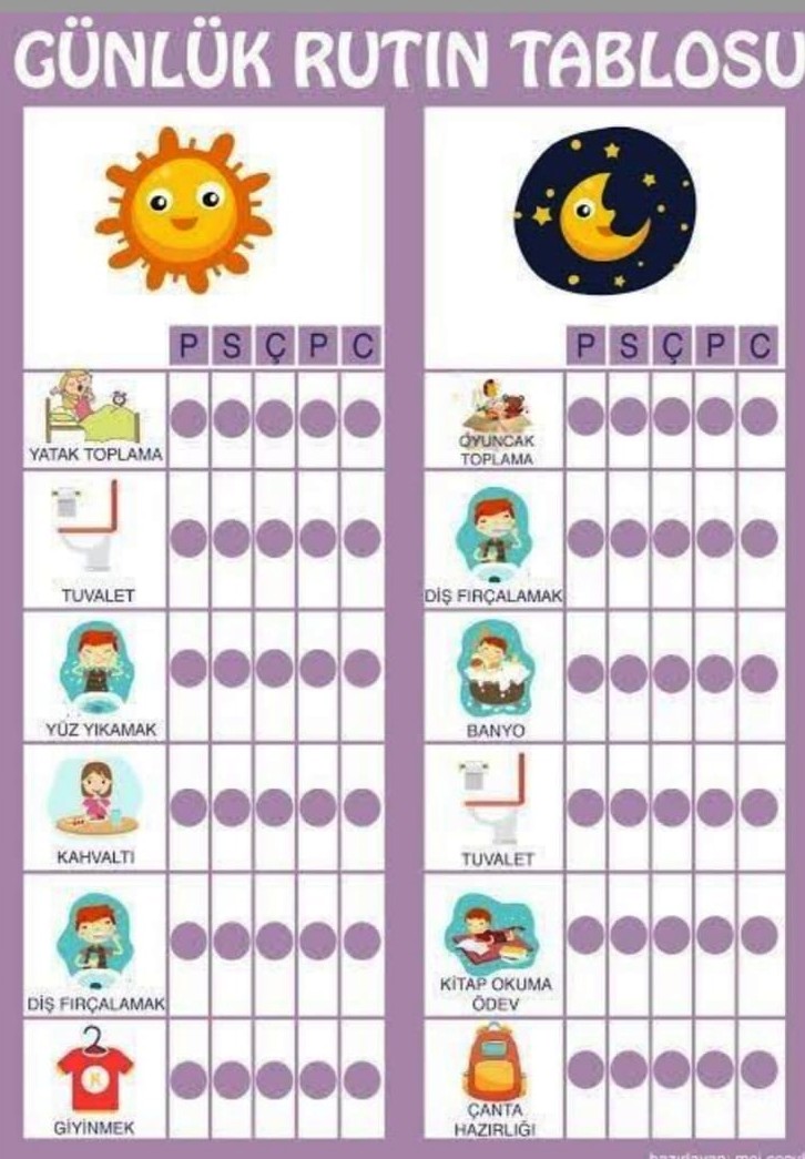 Bir çocuğun oyuncaklarını toplaması, yemek masası hazırlığında yardım etmesi gibi.