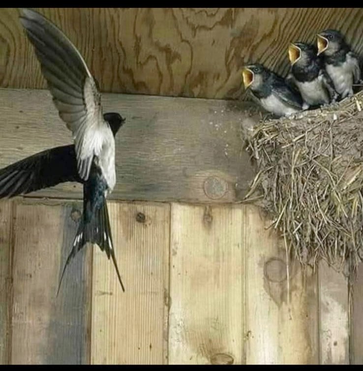 Anne birinci yavruya yem veriyor, birazdan baba gelip ikinciye, anne tekrar geldiğinde üçüncüye, baba gelip birinciye.